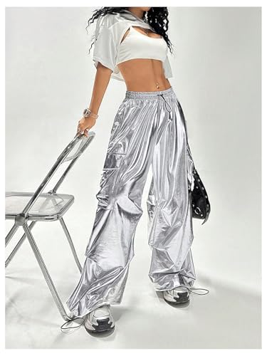 sought-after ! SHENHE Women's Y2k Metallic Cargo Pants Wide Leg Baggy Hip Hop Dance Rave Joggers Trousers