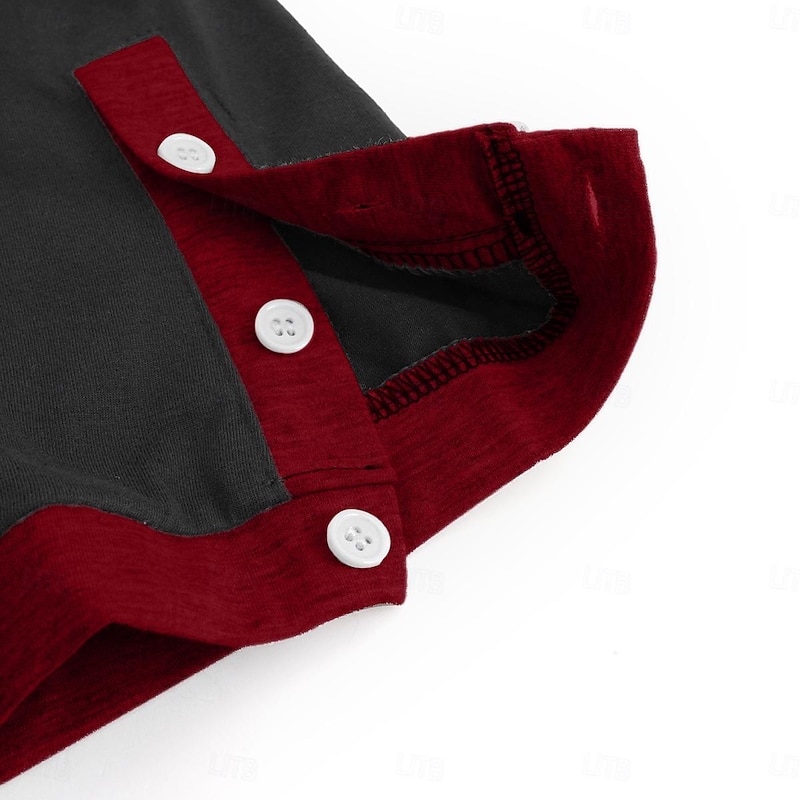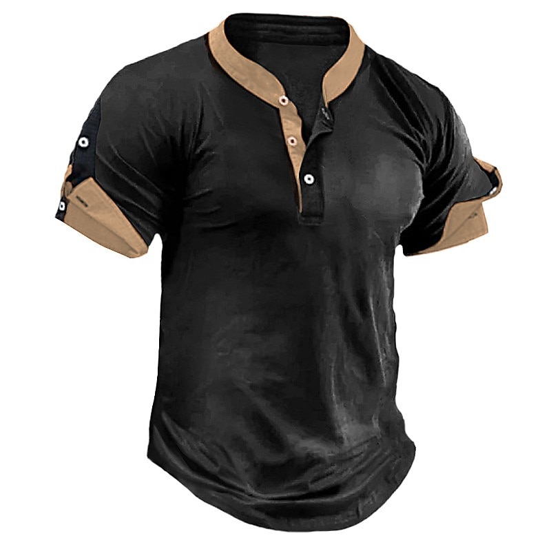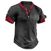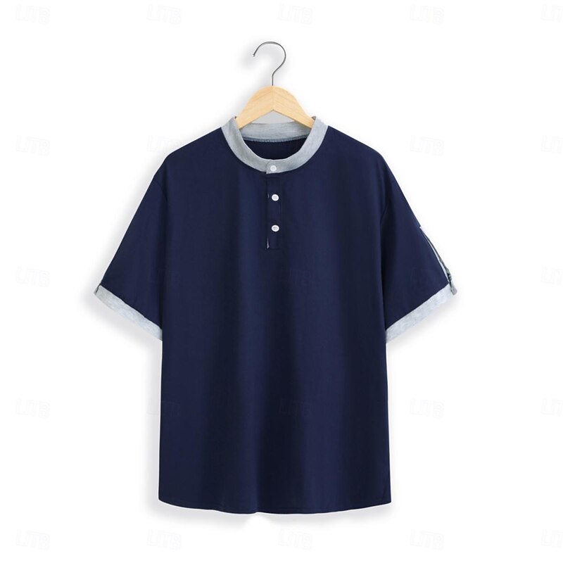 Highlights [Fabric] Crafted from a quality blend of cotton and cotton blend, this men's shirt offers breathability and comfort, perfect for summer wear. The fabric is soft to the touch, ensuring ease of wear throughout the day while providing durability and a slight micro-elastic give for added flexibility. [Fit] Designed for a regular fit, this shirt flatters the silhouette with a slim and slightly tapered cut that allows for freedom of movement. The short sleeves have rolled-up cuffs secured by button tabs, contributing to its relaxed appeal. [Design Highlights] The shirt features a present-day henley neckline with a three-button placket, combining functionality with style. The striking contrast of red accents on the collar and sleeve cuffs against a darker base color enhances its visual appeal and adds an edgy touch. [Occasions] Ideal for a range of occasions, from casual daily wear to street outings and vacations. Whether you're going for a laid-back look with jeans or opting for a more polished ensemble with chinos, this shirt suits various casual settings with ease. [Size Range] Available in a wide range of sizes, including S, M, L, XL, XXL, and XXXL, ensuring a suitable fit for men of different body types. Machine washable for easy care, this shirt is an effortless and versatile addition to any wardrobe. Perfect for everyday use. superior materials and excellent craftsmanship ensure long-lasting durability.