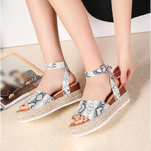 Women's Open Toe Buckle Ankle Strap Espadrilles Flatform Wedge Casual Sandal Comfortable Arch Support Wedge Sandals 7