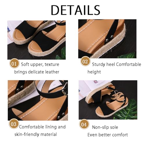 Women's Open Toe Buckle Ankle Strap Espadrilles Flatform Wedge Casual Sandal Comfortable Arch Support Wedge Sandals 4