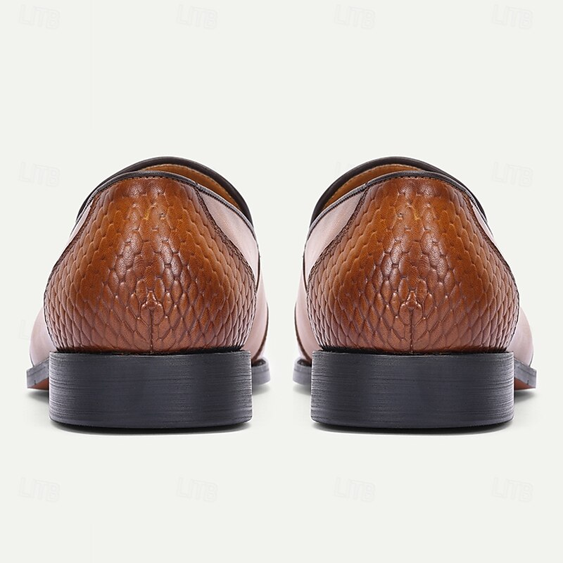 Men's Tan Leather Loafers with Snake-Print Detailing and Tassel Accent – Premium Cowhide Slip-On Dress Shoes for Business, Formal Occasions, and Everyday Wear 11