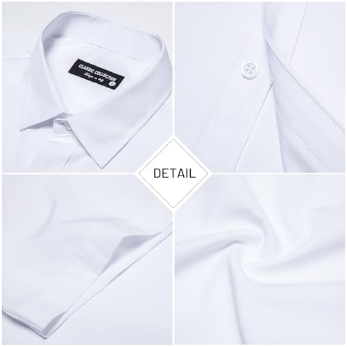• Slim Fit Design:Mens button down short sleeve shirt is featured with turn down collar, slim fit, short sleeve. It's designed to resist wear and maintain its texture.The tailored slim-fit cut provides a modern, sharp look that flatters the body shape without being too tight