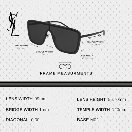 • Perfect Fit: Experience the Perfect Fit with these Saint Laurent sunglasses. Featuring lens dimensions of 99mm width, 56.7mm height, 1mm bridge, and 140mm temple length, these shades offer both style and comfort. Elevate your style with the timeless appeal of these sunglasses, tailored for the modern men and women.