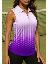 More information about Women's Geometric Gradient Sport Shirt Golf Polo Shirt Tennis Shirt Sleeveless Zipper Floral UPF50+ UV Resistant High Elasticity Moisture Wicking Breathable Tennis Golf Pickleball Turndown Zip Collar