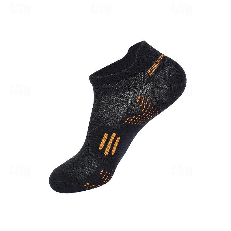 Highlights [Fabric:] Made from 80% cotton, these men's socks offer a comfortable and breathable experience, perfect for keeping your feet dry and comfortable. The moisture-wicking properties enhance their suitability for high-performance activities. [Fit:] These socks come in a low-cut design that provides great comfort and flexibility, making them an excellent choice for both sports and casual wear. [Design Highlights:] The socks feature a color block pattern in striking colors such as green, white, black, orange, pink, gray, and purple, to add a stylish flair to your ensemble. The reinforced heel and toe ensure durability, while strategically placed cushioning provides enhanced support and reduced impact. The mesh ventilation structure increases airflow for improved comfort. [Occasions:] Ideal for sports, outdoor activities, vacations, and daily wear, these socks are versatile enough to suit a range of activities and add a fashionable touch to your wardrobe. [Size Notice:] Available in one size that is designed to fit most, these socks offer a stretchy elasticity that accommodates different foot sizes comfortably.