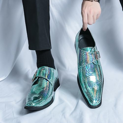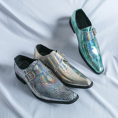Men's Buckle Chelsea Boots,Leather Pointed Toe Slip On Retro Low Top Fashion Ballroom Party Western Cowboy Dress Boots 5