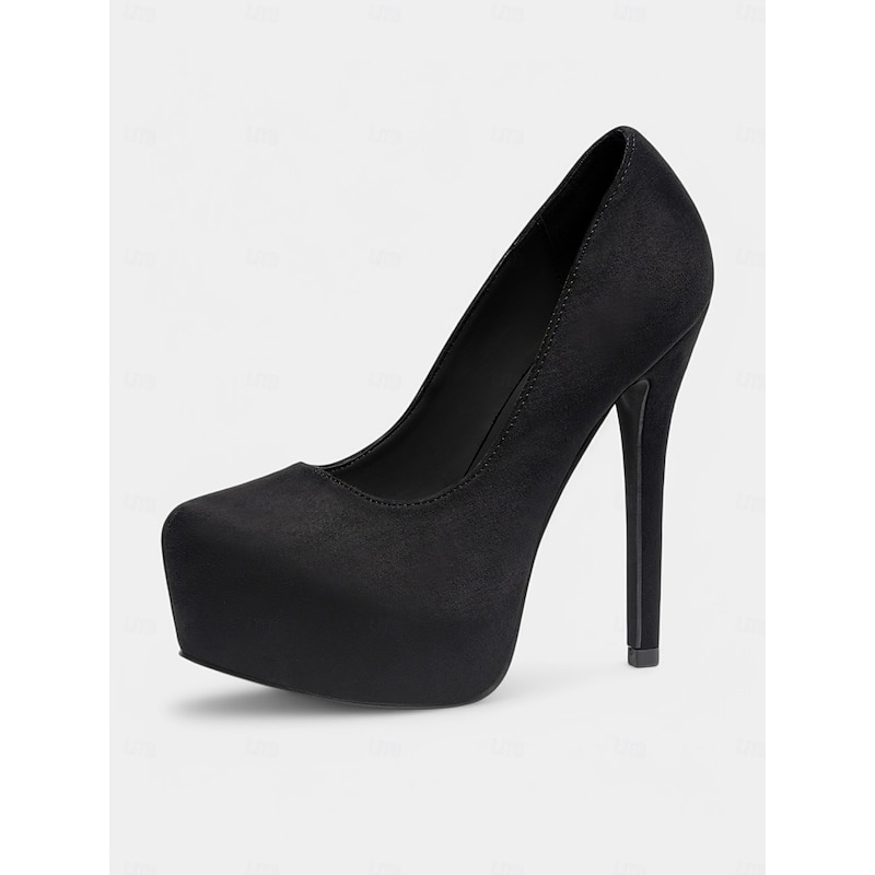 Women's Black Platform High Heels –1980s Elegant Suede Stiletto Pumps for Parties, Weddings, and Evening Events 5
