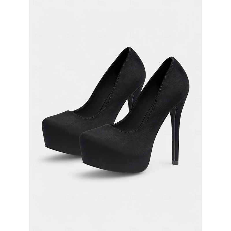 Women's Black Platform High Heels –1980s Elegant Suede Stiletto Pumps for Parties, Weddings, and Evening Events 9