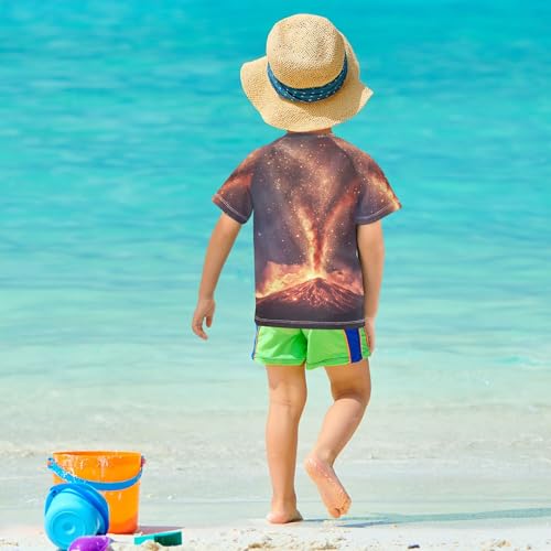 Volcanic Eruption Red Flames Bathing Suit Girls Short Sleeves Shirts Swimwear Beach Tops 3T 3