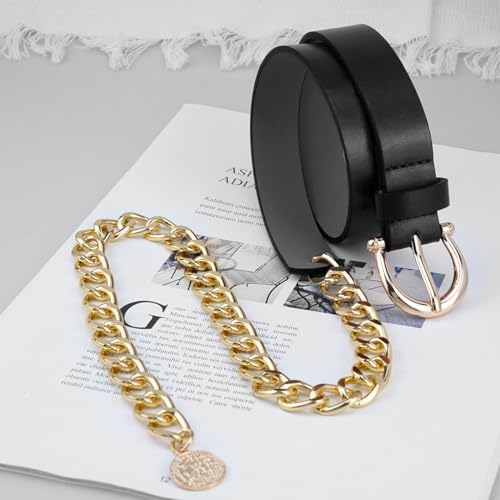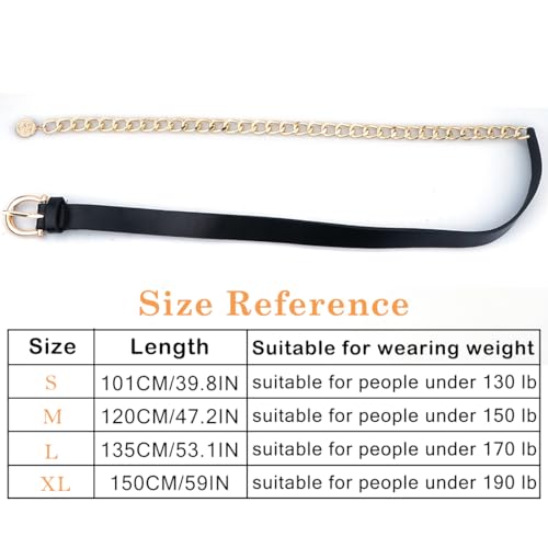 • 【Material】This women's waist chian belt is made of high quality alloy and leather, can be worn for a long time, and is not easy to fade, rust, discolour, maintain gloss.