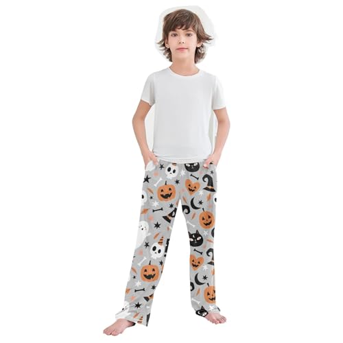 Boys' Pants Pumpkins Cats Ghosts Gray Long Bottoms Jogger Pants Elastic Waist Trousers with Pockets S-XL