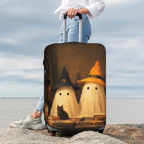 Two Cute Ghosts And Black Cat Elastic Travel Luggage Covers Dustproof Scratch-Resistant Suitcase Protector Fit 22-24 Inch 7
