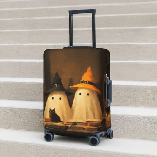 Two Cute Ghosts And Black Cat Elastic Travel Luggage Covers Dustproof Scratch-Resistant Suitcase Protector Fit 22-24 Inch 2
