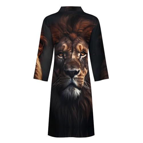 Animal King Lion Mens Robe Soft Lightweight Knee Length Loungewear Spa Bathrobe Long Sleeved Nightgown 1