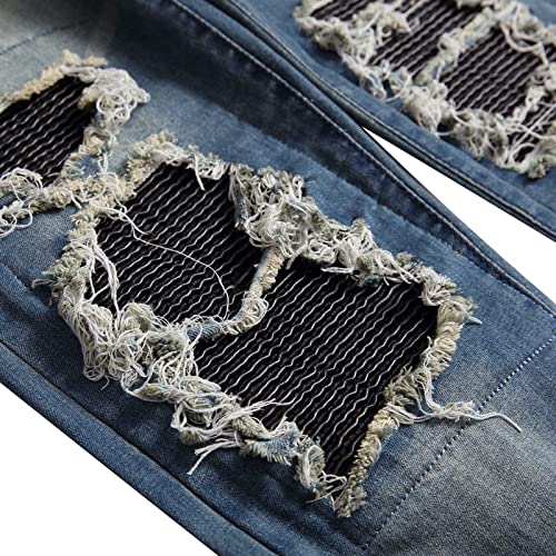 More information about Men's Ripped Jeans Casual Stretch Button Zipper Pants with Pockets Relaxed Fit Denim Pants Boys Trendy Streetwear Jeans