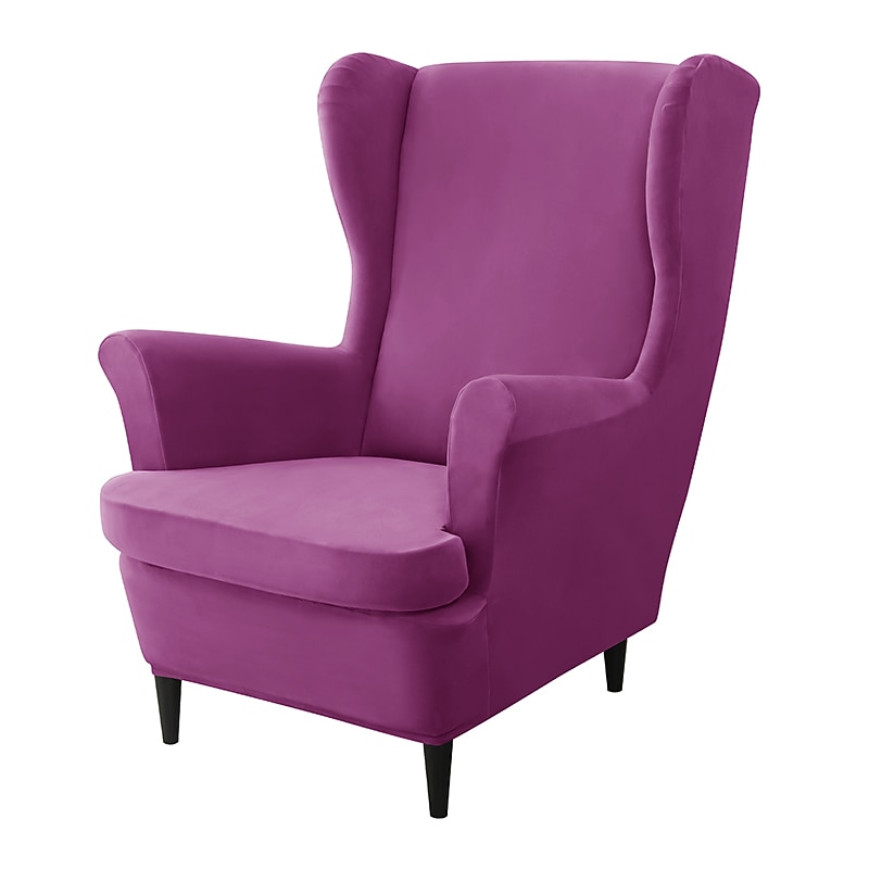 HOT ! Stretch Wingback Chair Cover Burgundy Wing Chair Slipcovers With Seat Cushion Cover Spandex Velvet Wingback Armchair Covers