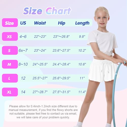 • 【Girls Butterfly Shorts】Our 2 in 1 girls flowy Athletic shorts,elastic inner shorts design provide greater freedom of movement,letting girls move freely when run, jump, twist and any exercise.