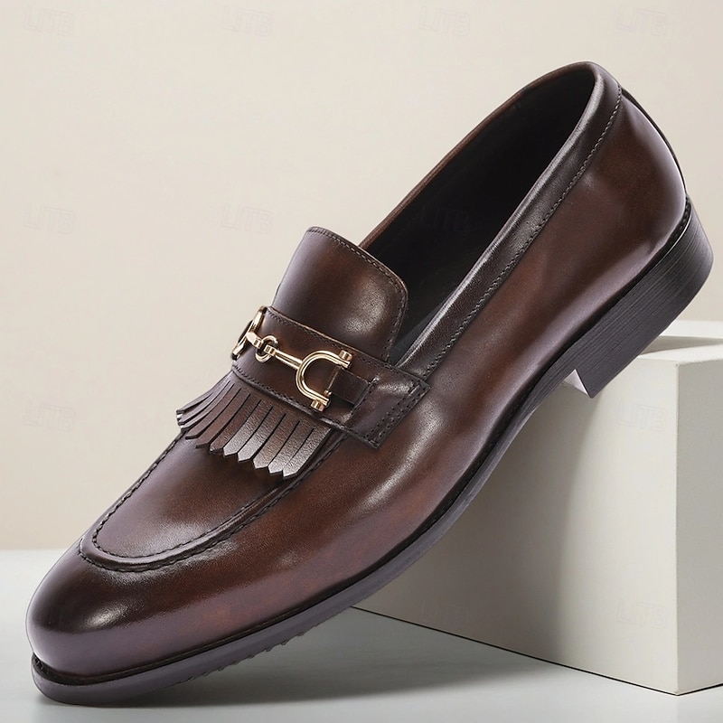 HOT ! Men's Dark Brown Tassel Loafers with Horsebit Accent – Vintage Slip-On Leather Shoes for Daily Wear, Office and Dinner Dates