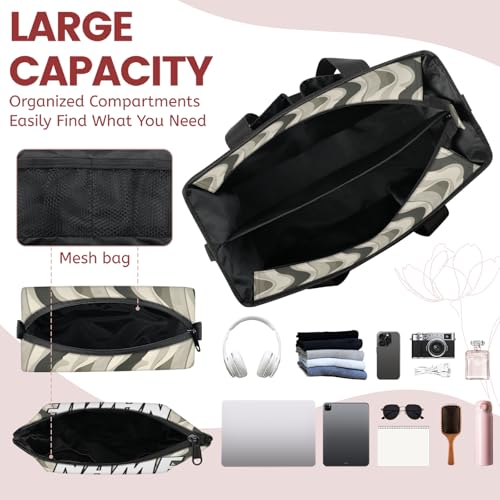 Custom Retro Aesthetic Swirl Travel Duffle Bags for Women Weekender Overnight Mid Century Boho Carry on Tote for Airplanes Business Hospital Gym with Toiletry Bag 3Pcs Set