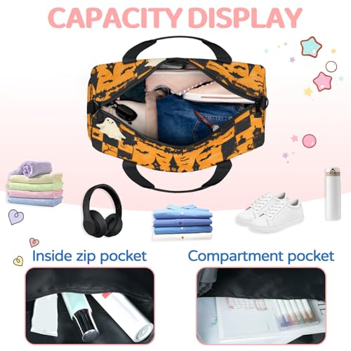 Halloween Themed Travel Duffle Bag Sports Yoga Weekender Overnight Workout Bags Spooky Lightweight Waterproof Gym Tote Bag for Women 7