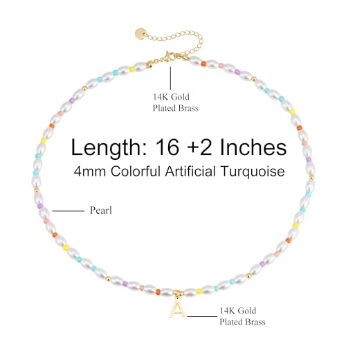 • Material: Our initial necklaces made of 14k real gold plated brass initial letter pendant, colorful bead pearl chain. Nickel-free, lead-free, and hypoallergenic. It is no harmful for the sensitive skin and you can wear it comfortable all day.