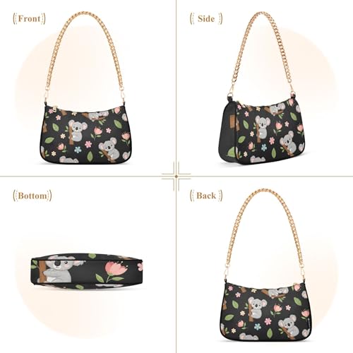 More information about Cute Cartoon Koalas Pastel Floral Lady One Shoulder Bag for Women Casual Purse Hobo Formal Designer Handbags Zipper Closure