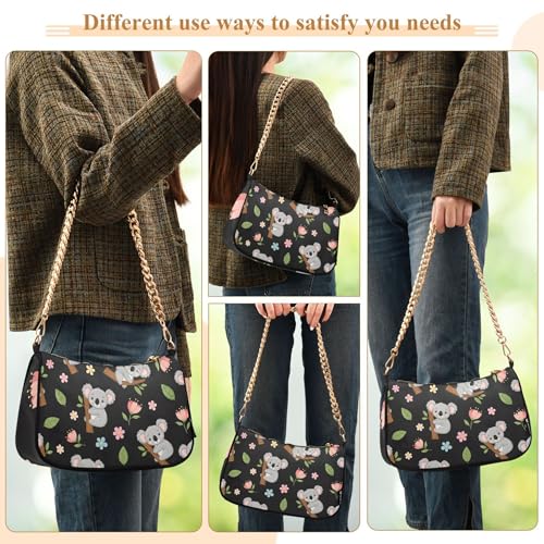 Cute Cartoon Koalas Pastel Floral Lady One Shoulder Bag for Women Casual Purse Hobo Formal Designer Handbags Zipper Closure 3