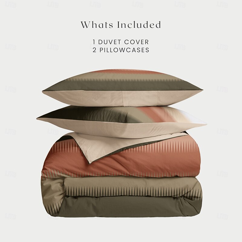 Duvet Cover Set with Casual Color Block Print, 100% Cotton, Soft and Breathable Fabric, Includes Duvet Cover and Pillowcases, Hypoallergenic and Skin-Friendly, Machine Washable, Durable, Comfortable 1