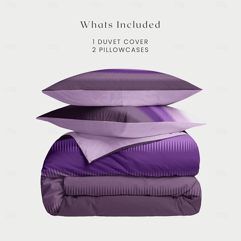 Duvet Cover Set with Casual Color Block Print, 100% Cotton, Soft and Breathable Fabric, Includes Duvet Cover and Pillowcases, Hypoallergenic and Skin-Friendly, Machine Washable, Durable, Comfortable 2