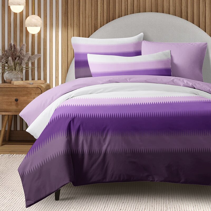 Duvet Cover Set with Casual Color Block Print, 100% Cotton, Soft and Breathable Fabric, Includes Duvet Cover and Pillowcases, Hypoallergenic and Skin-Friendly, Machine Washable, Durable, Comfortable 7