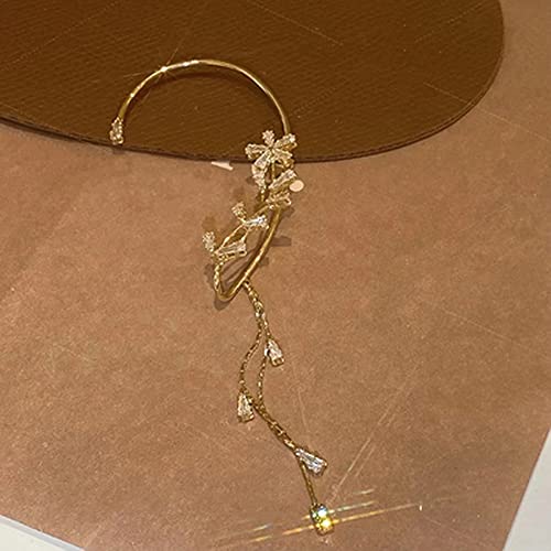 HOT ! BETHYNAS Glitter Rhinestone Butterfly Flower Ear Cuff Sparkly Non-Pierced Crystal Tassel Fake Earrings Climber Lady Ear Wrap Bridal Party Ear Jewelry for Women and Girls