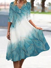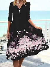 More information about Women's Midi Dress Casual Dress Swing Dress A Line Dress Boho Dress Casual Vacation Daily Regular Fit Floral Leaf 3/4 Length Sleeve Split Neck Pink Blue Purple Fall