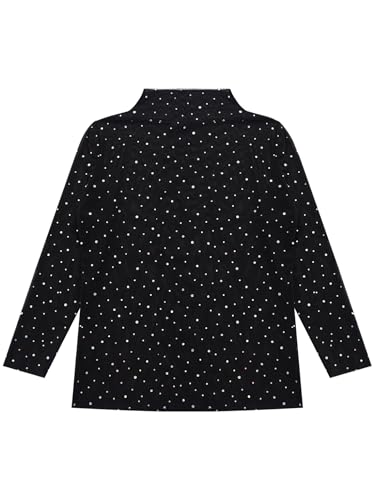 YEAHDOR Kids Girls Glittery Sheer Mesh Tops Long Sleeve Shiny Rhinestones Tee Shirts Blouses Dance Tops 5