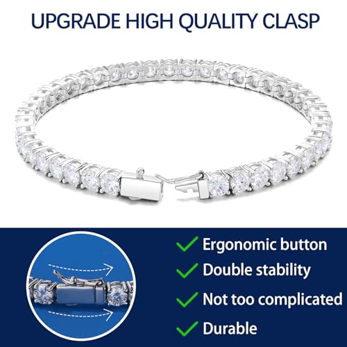 Never Fallen Off Moissanite Tennis Bracelet for Women Men with Composite Clasp 925 Silver Plated with White Gold Chain 6.5'-7.5'' Length 4