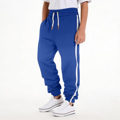 sought-after ! Boys Tricot Open Bottom Fleece-Lined Sweatpants with Pockets Contrast Stripes Elastic Cuff Active Athletic Jogger Trousers