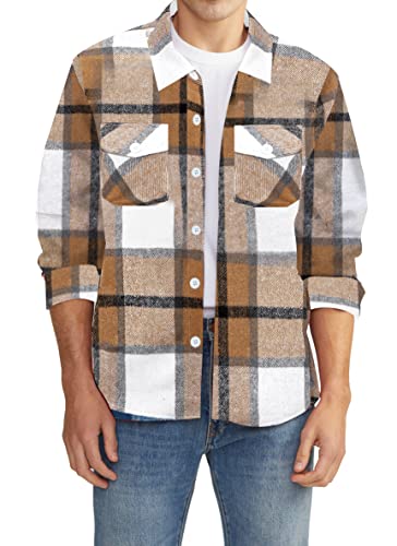 • Long Sleeve Button Down Plaid Flannel Shirt Jacket for Boys and Men