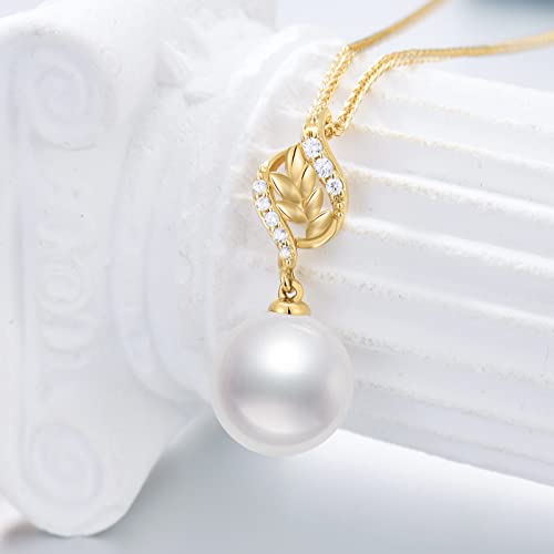 SISGEM 14k Gold Natural Diamond Leaves Freshwater Cultured Pearl Necklaces for Women with 14kt Gold Wheat Chain, 16-18 Inches 1
