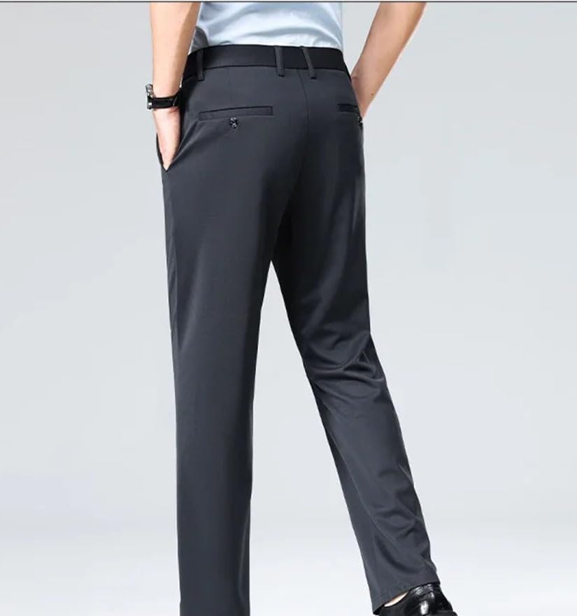 HOT ! Men's Stretch Solid Suit Pants - Business Casual Office Straight Trousers Spring
