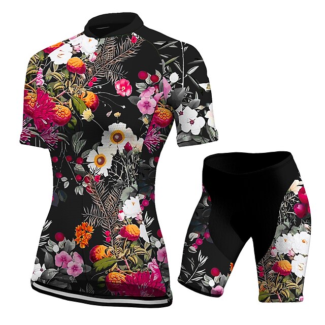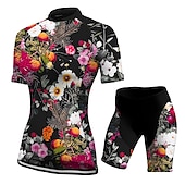 More information about 21Grams Women's Cycling Jersey Set Short Sleeve Cycling Jersey with Shorts Reflective Strips Moisture Wicking Summer Black Green Floral Botanical Funny Bike Clothing Suit 3D Pad Breathable Quick Dry