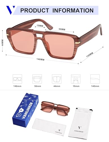 HOT ! VANLINKER Polarized Trendy Square Double Bridge Aviator Sunglasses for Women Men Retro Vintage Shades VL9835