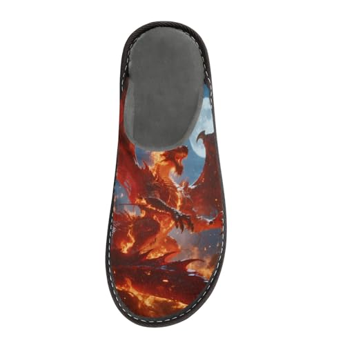 HOT ! Slippers for Women Fiery Dragon Moonlight Soft Fuzzy Women's Slippers Indoor and Outdoor Shoes
