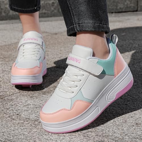 • [Easy To Roll]-Our roller skating shoes sneakers with 4-wheel which is stable and safe, engineered to be beginner-friendly, making it easy for kids to learn and enjoy the rolling experience from the start, making her or his childhood life more fun. A pair of roller shoes come quipped with 2 * removable wheels, 2 * black cover plate and a tool.