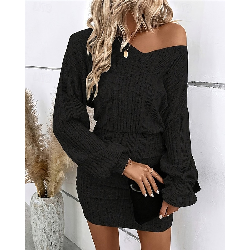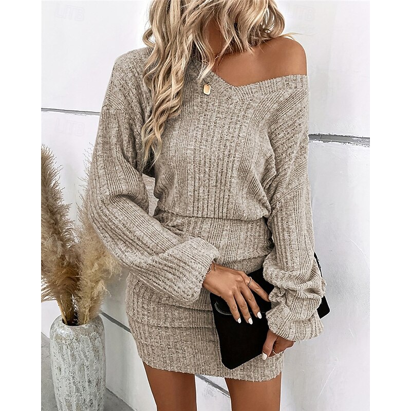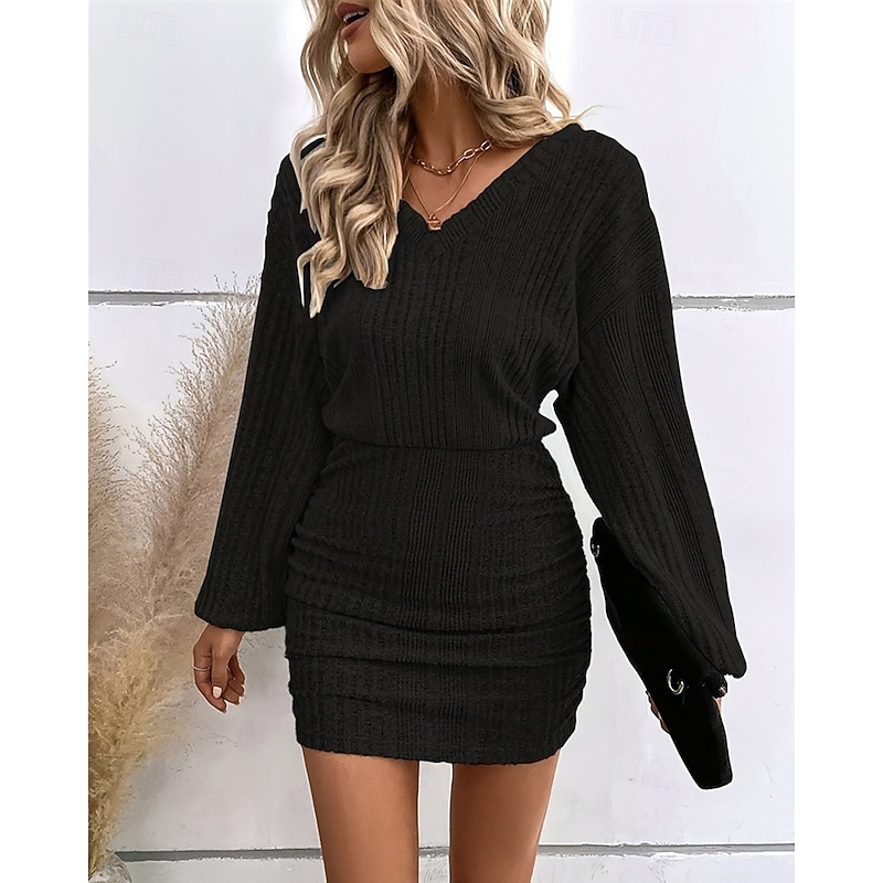Why Choose Women's Mini Dress Knit Dress Casual Dress Bodycon Fashion contemporary Batwing Sleeve Daily Weekend Regular Fit Plain Long Sleeve V Neck Black Khaki Summer Spring Fall?