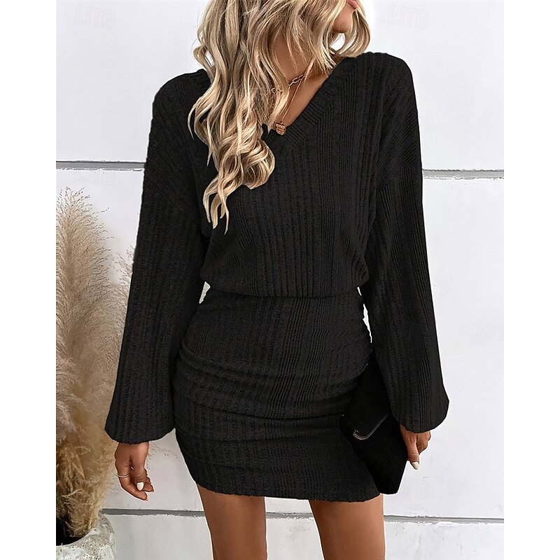 This Women's Mini Dress Knit Dress Casual Dress Bodycon Fashion current Batwing Sleeve Daily Weekend Regular Fit Plain Long Sleeve V Neck Black Khaki Summer Spring Fall combines elegant design with practical functionality. Every detail has been carefully considered to ensure you get the best possible experience. The top-grade construction means this product will serve you well for years to come.