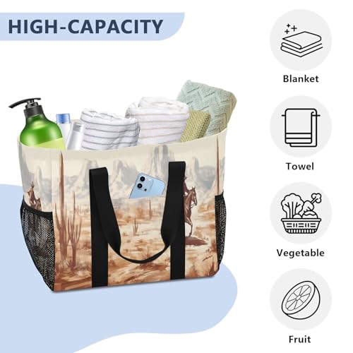 Western Desert Cowboy Large Beach Bag Waterproof Beach Tote Bags for Women Travel Gym Pool 7
