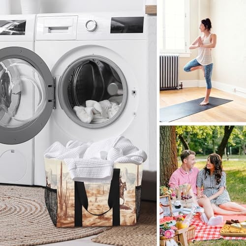 Western Desert Cowboy Large Beach Bag Waterproof Beach Tote Bags for Women Travel Gym Pool 3