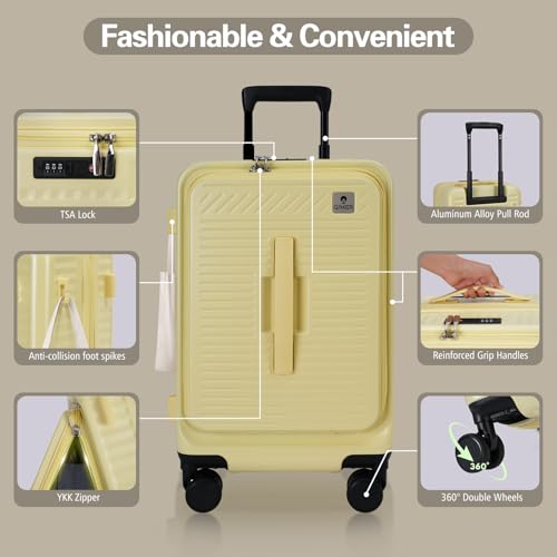 More information about 20 Inch Luggage with Spinner Wheels,Expandable Front Opening Suitcase 100% PC Hard Shell TSA Lock, Smooth Rolling Wheels, Lightweight Travel for Men and Women, Y03 Yellow Slightly Larger