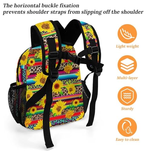 Sunflower Leopard Colorful Mexican Serape 13 Inch Backpack Lightweight Double Shoulder Bag with Zippers Unisex Daypack 5