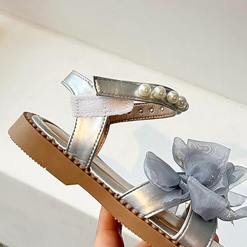 White Dress Sandals For Girls Breathable Open Toe Wedding Flower Sandals With Rubber Sole Summer Bowknot Shoes 6