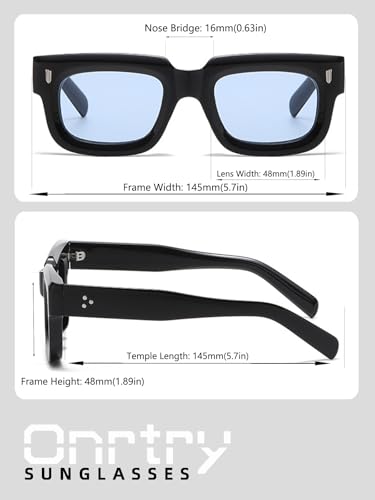 Onrtry Square Frame Sunglasses for Men Women Chunky Rectangle Sun Glasses Black Shades 2